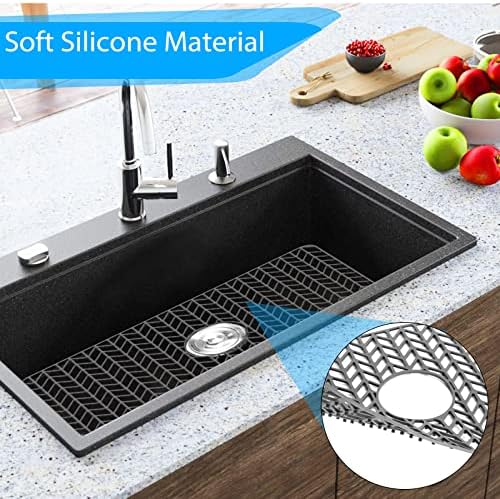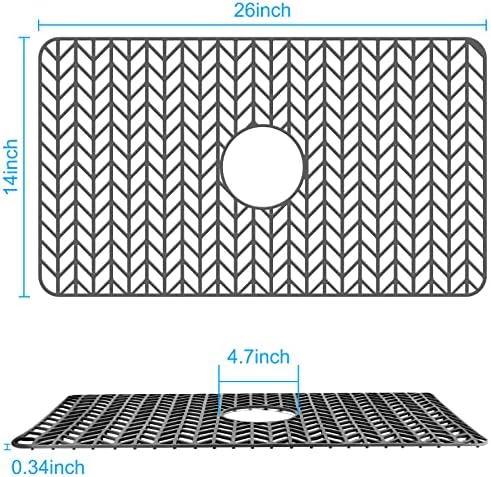 Kitchen Sink Mat, 26''x14'' Sink Protectors for Kitchen Sink, Non-slip Silicone Sink Mat for Bottom of Kitchen Stainless Steel Porcelain Sink Center Drain