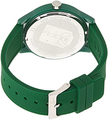 - Dial features three hands, hour markers, Lacoste detailing and logo.