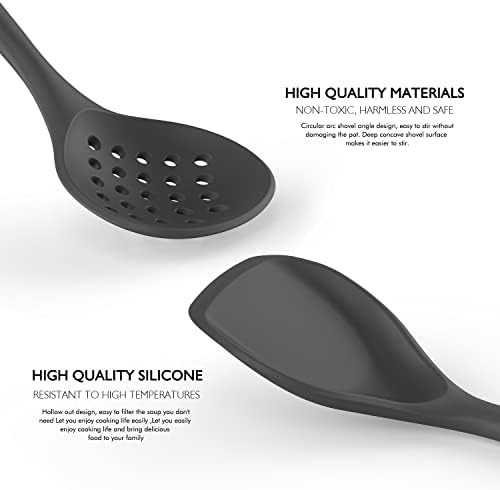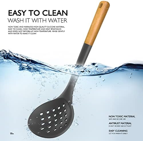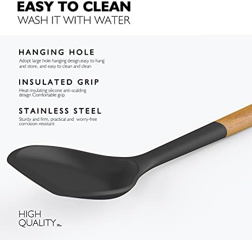 HEAT-RESISTANT, SOFT AND DOES NOT HURT THE POT, DOES NOT WARP : These silicone cooking utensils set can withstand heat up to 446°F (230°C). You can use them in boiling water or hot oil. The stainless steel is wrapped in silicone to form a whole body, which is soft and retains memory without warping. This allows chefs to use them to easily stir and flip food without you having to worry about scratching the surface of the non-stick pan