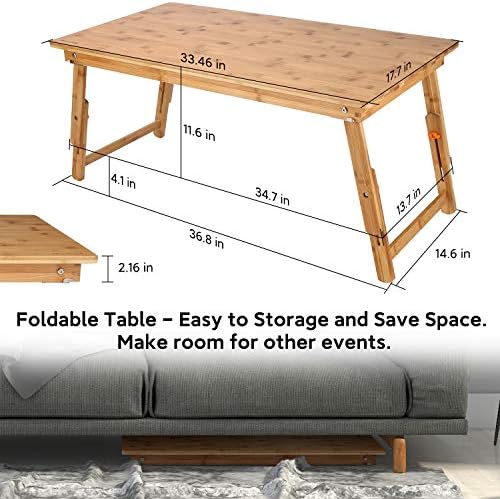 Large Size Floor Desk Nnewvante Floor Table Tray with Folding Legs Adjustable Low Coffee Table for Breakfast Serving Tray Gaming Writing 33.5×17.7in