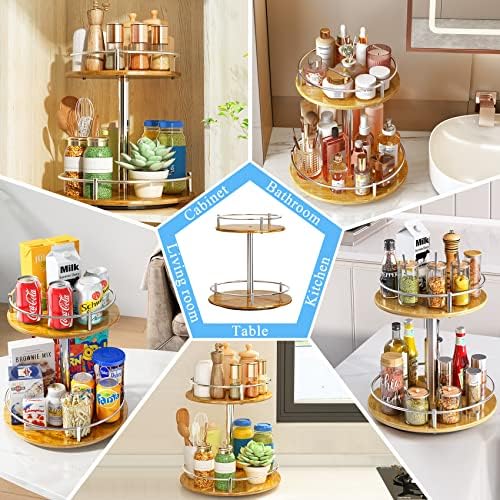 Lazy Susan Turntable Organizer for Cabinet Pantry Kitchen Countertop Refrigerator Cupboard, Wood (2 Tier-Silver 12 Inch)