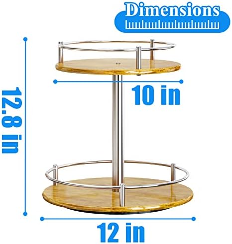 Lazy Susan Turntable Organizer for Cabinet Pantry Kitchen Countertop Refrigerator Cupboard, Wood (2 Tier-Silver 12 Inch)