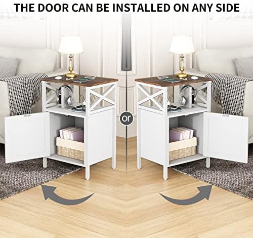 LDTTCUK Side Table with Charging Station, End Table with Power Outlet & USB Ports, Nightstand with 2 Tiers Storage Space and Storage Cabinet, Sofa Side Tables for Bedroom, Living Room,Office,White