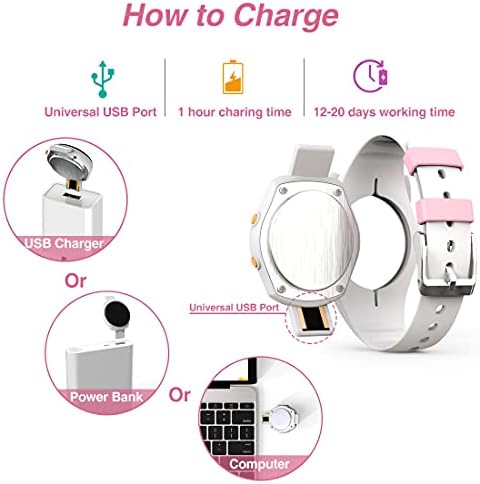 [LOOG BATTERY LIFE/ EASY CHARGING]: Remove the watch from the strap ,then plug micro USB cable into the watch to charge. Fully charged battery will last up to 12-20 days and the USB charging is easy!
