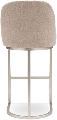 The Leick Home 10133PW/OL Barrelback Bar Stool is sturdily built and stylishly appointed. This stool not only provides a comfortable seat but also a veritable feast for the eyes with textural juxtapositions of lustrous steel and neutral oatmeal upholstery. The crowned high density foam seat meets a wrap around, barrelback backrest and a durable, heavy gauge steel base with curved elements. This barstool is perfect for elevated kitchen counters, high top tables, and bars. Luxurious comfort meets modern design to give you the perfect balance between contemporary and cozy. Designed and manufactured by Leick Home, the trusted source for quality home furnishings for every taste and budget.