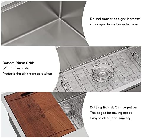 【Commercial Grade BRUSHED FINISH+Workstation Design 】Unlike satin finish, Lepuday 30 undermount workstation sink’s brushed-finish hides scratches and matches well with your kitchen appliances. The stainless steel kitchen sink is also designed with integrated ledges that allows you to shift the sink to a workstation when needed.