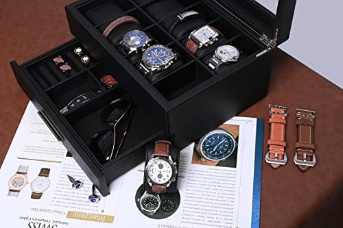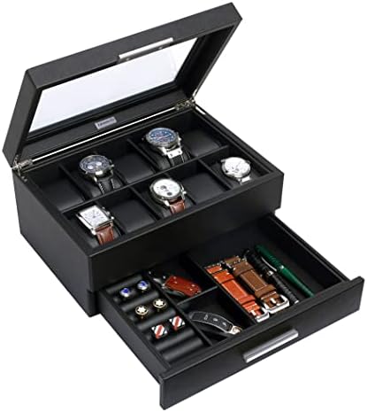 Lifomenz Co Leather Watch Box with Drawer for Men Watch Jewelry Box Organizer,Watch Display Case Catchall Tray for Men Accessories Organizer,Watch Storage with Large Watch Holder
