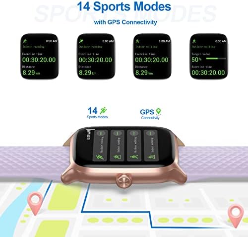 14 Sports Modes and Accurate Health Tracker: Our Fitness Watch supports 14 sports modes, like walking, running, cycling and so on. You can keep track of your workout throughout the day, including your steps, distance, calories burned, and mileage. You can connect your smartphone GPS to your smart watch to track all your routes and distances during your workout.