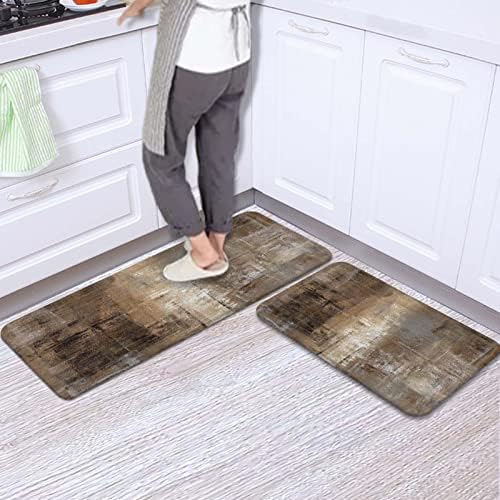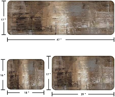 Lnond Kitchen Mat Set of 3 with Dish Drying Mat, Brown Washable Cushioned Kitchen Rugs and Mats, Rubber Non Skid Kitchen Mats for Floor for Kitchen Laundry Room Front of Sink