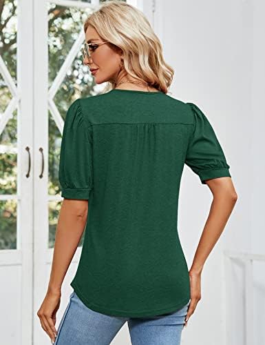 LOMON Women’s V Neck T-Shirt Puff Sleeve Ruffle Top Button Down Henley Tunics