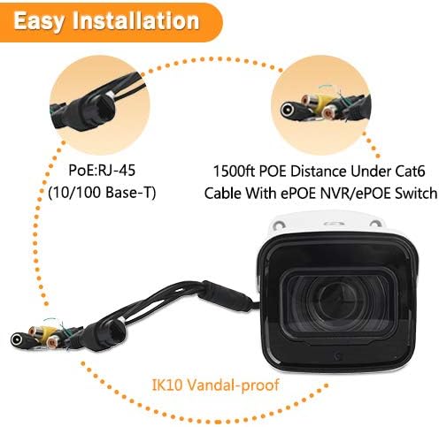 Loryta Camera Smart 2MP Ultra Low Light Starlight IR Bullet IP Camera, Support POE and ePOE, WDR Smart H.264+/H.265+, 5.3mm-64.0mm Motorized Vari Lens, IP67,IK10 IPC-HFW5241E-Z12E