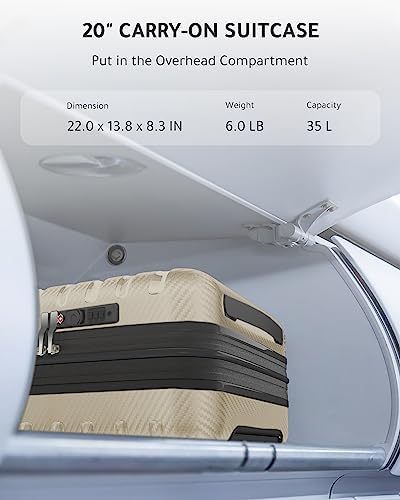 FOCUS ON PRIVACY – Champagne carry on luggage with 3 large built-in dividers, 2 small pockets, and double-sided mesh, provides a spacious interior, perfect for keeping your travel essentials neatly organized and private.
