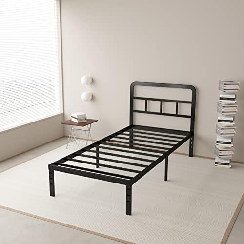 Maenizi Twin Bed Frames with Headboard, 14 Inch Twin Bed Frames No Box Spring Needed Support Up to 2500 lbs, Noise Free, Easy Assembely, Black