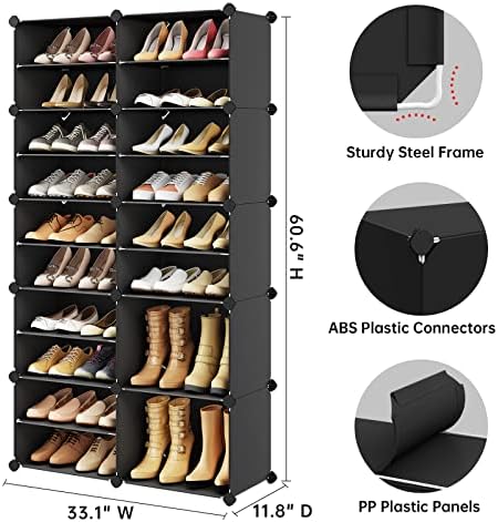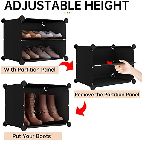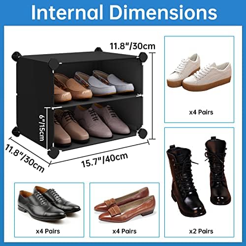 【Sturdy Shoe Shelves】The shoe storage organizer is constructed from metal frames and ABS connectors. Upgraded connectors make the structure more stable. The max load capacity of each cube is 11lbs (5kg).
