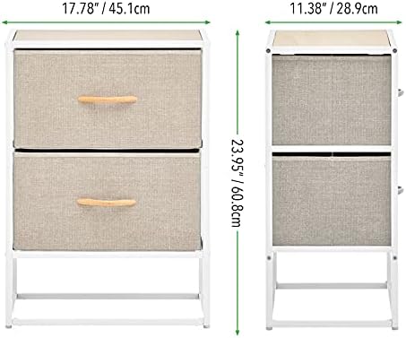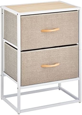 mDesign Modern 2-Drawer End Table/Night Stand Storage Unit, Sturdy Steel Frame, Wood Top, Easy-Pull Wood Handles/Fabric Bins, Organizer for Bedroom, Hallway, Entryway, Margot Collection, Linen