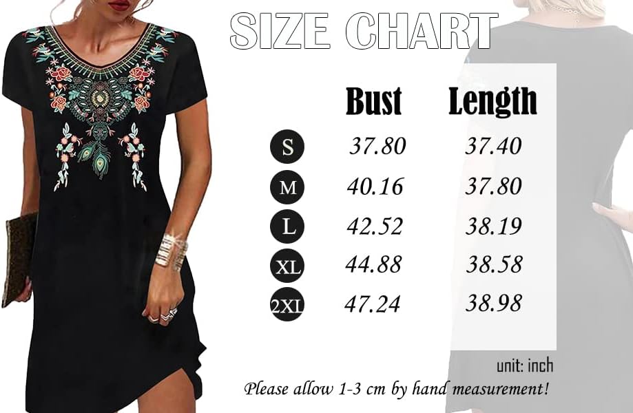Feature: short sleeve, round neck, ethnic style, exquisite floral embroidery, casual loose fit, mid length, this short sleeve traditional mexican dress for women is so fashionable, very easy to dress up or dress down.