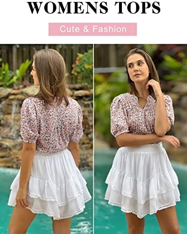 Fashion Features: v neck t shirts for women, puff sleeve shirt, short sleeve tunic, ladies tops and blouses, cute pleated in front design, curved hem T-Shirt, summer tops, loose casual tee, soft material and no pilling.