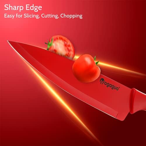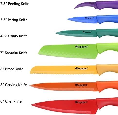 Ergonomic Handle – Mogaguo colorful knife set ergonomic handle is designed for comfort grab to feel and well-balanced minimizes wrist tension while providing a secure.