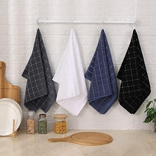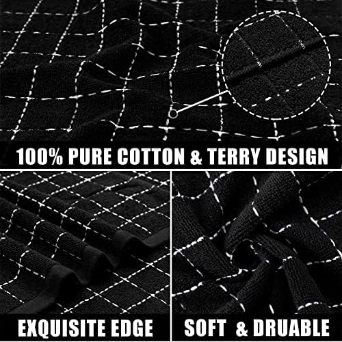 Mordimy 100% Cotton Terry Kitchen Towels, 16 x 26 Inches, Checkered Designed, Super Soft and Absorbent Dish Towels for Kitchen Drying, Perfect for Kitchen and Household Cleaning, 4 Pack, Black