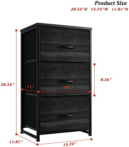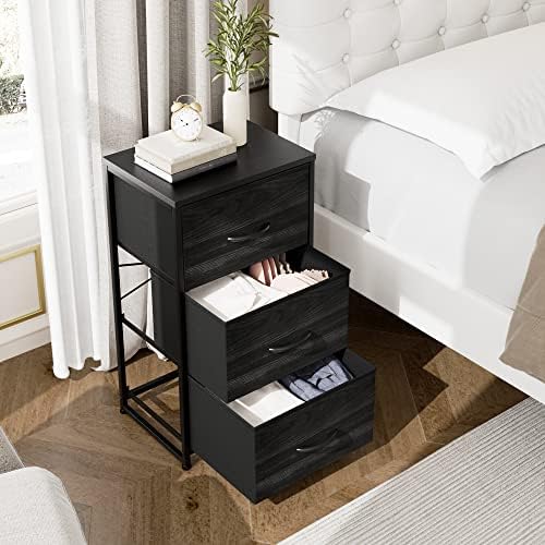 Nicehill Nightstand, Dresser with 3 Drawers, Bedside Table Chest of Drawers, Small Dresser for Bedroom, Kids' Room, Closet, Kids Dresser with Wooden Top Steel Frame, Modern, Black Wood Grain