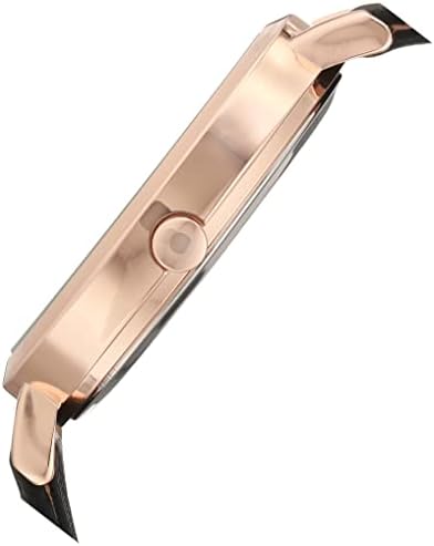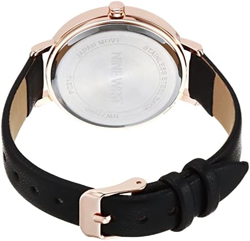 Glossy black dial with floral design; rose gold-tone hands and markers