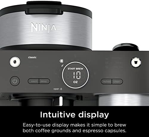The Ninja Espresso & Coffee Barista System is a single-serve espresso system that also brews coffee grounds, with brew sizes ranging from single cup, to travel mug, to 12-cup carafe. Brew coffee grounds in up to 9 sizes and 3 brew styles: Classic, Rich, and Over Ice. Use your favorite espresso capsules to brew in 3 different styles: Espresso, Lungo, and Over Ice. With Barista Plus Technology, this 19-bar pressure system delivers an ultra-flavorful espresso with a silky-smooth crema by brewing at the optimal temperature and pressure. Create cappuccinos, lattes, and other coffeehouse drinks with the built-in, fold-away frother.