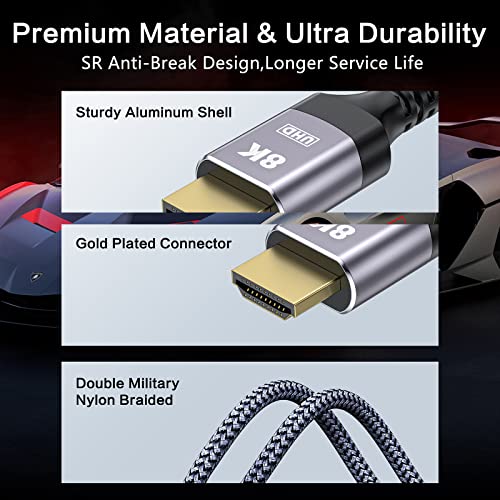 【8k High Definition HDMI Cable 6.6FT】 NITASA 8K HDMI cables comply with standard HDMI 2.1version and are backward compatible with HDMI version 2.0b/2.0a/1.4/1.3/1.2/.Support resolution and refresh rate up to 8K@60Hz, 4K@120Hz, transmission speed up to 48Gbps bandwidth, support 3D video display, HDCP 2.2&2.3,dynamic HDR,eARC,VRR, ALLM,QMS,QFT.Through 8K HDMI’s unique dynamic HDR and 12-bit color processing technology, every scene of the video is every frame will no longer freeze or drop frames.