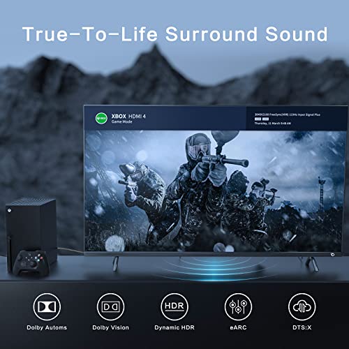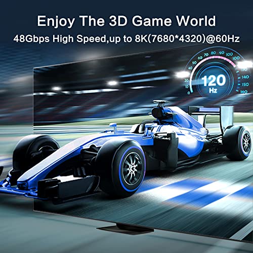 【4K@120Hz for Gaming】Compared to HDMI 2.0, its transmission speed has taken a quantum leap from 18Gbps directly to 48Gbps (6GB/s).With 8K HDMI’s unique dynamic HDR and 12-bit color processing technology and 48Gbps bandwidth,it delivers Ultra HD movie experience and 3D visual effects,it also enables ultra-smooth images 4K@120HZ.Variable refresh rate and fast media switching reduce latency, motion blur and frame tearing for smoother, lag-free gaming and real-time interactive virtual reality.