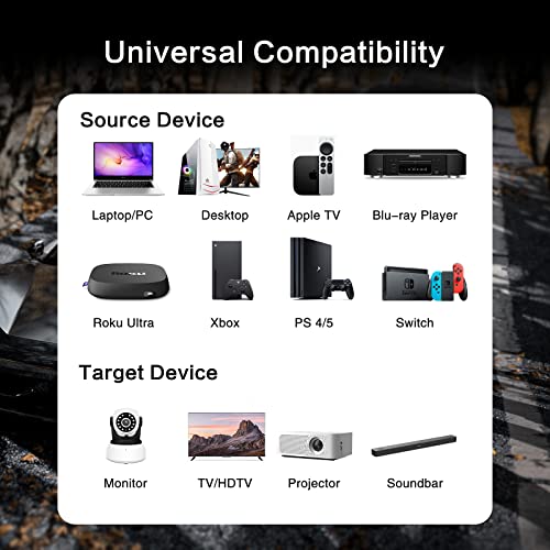 【Universal Compatibility】 NITASA 8K hdmi cord is made of high-quality materials for the best contact connection between HDMI equipment, Apple TV 4K, Fire TV, CD/DVD/Blu-ray players, PS5/PS4/PS3, Steam deck,Xbox One/360, Nintendo Switch, laptops, computers,or other HDMI-enabled devices and your 4K/8K (TCL SHARP Hisense Vizio Insignia Hitachi RCA ROKU Toshiba Westinghouse) Smart HD TV, monitors, projectors,or displayers from brands like Samsung,Dell,LG,Panasonic, and others.