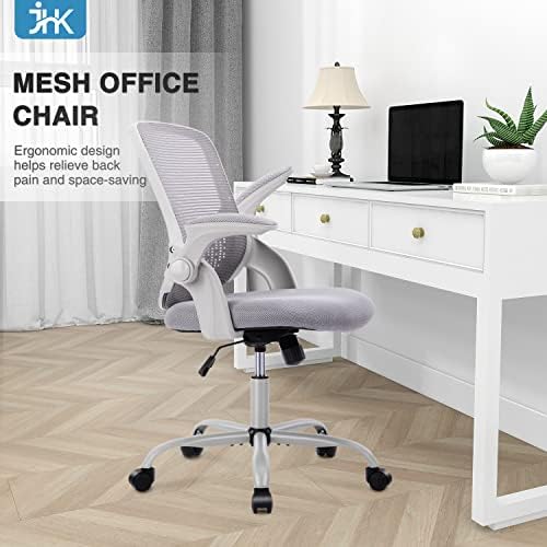 Office Chair, Desk Chairs with Wheels Computer Chair Mesh Home Office Chairs with Flip-up Armrests, Ergonomic Rolling Swivel Chair with Lumbar Support Height Adjustable Tilt and Lock, Grey