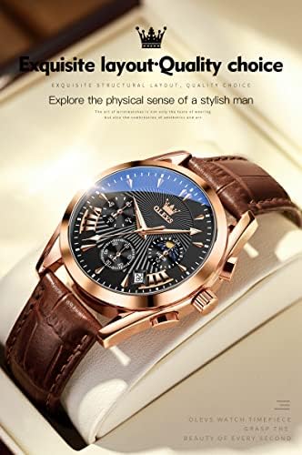 OLEVS Mens Watches-Chronograph Fashion Casual Analog Quartz Watch Waterproof, Dress Luminous Wrist Watches with Leather Strap for Men Black/Brown/White/Blue Dial
