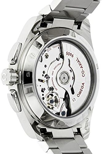 A scratch-resistant sapphire crystal protects this unique dial. The bezel is mounted on a 43 mm stainless steel case presented on a matching bracelet. This seamaster aqua terra 150M chronograph GMT is powered by the omega co-axial calibre 9605 visible through the transparent case back