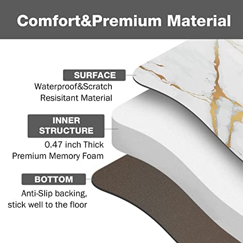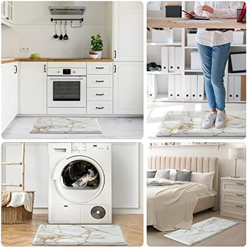 Opulentix Kitchen Mats for Floor Anti Fatigue Kitchen Mats and Rugs Cushioned Non Skid Waterproof Thick Comfort Marble Kitchen Floor Mats for Standing in Front of Sink Desk Office 17.3"x28", Gold