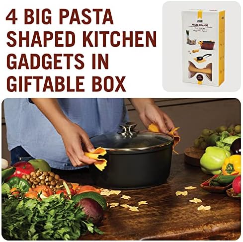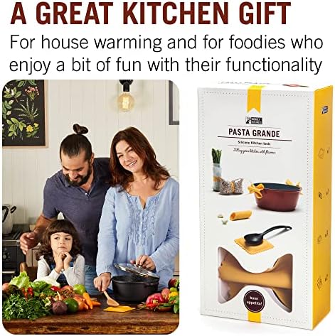 Pasta Grande – Fun Pasta Shaped Silicone Kitchen Tools in a Gift Box / 4 of our Pasta-shaped kitchen gadgets in one festive giftbox/Farfalloni, Ravioli, Penneli & Mafaldine/by Monkey Business