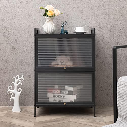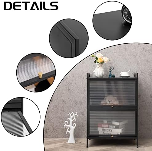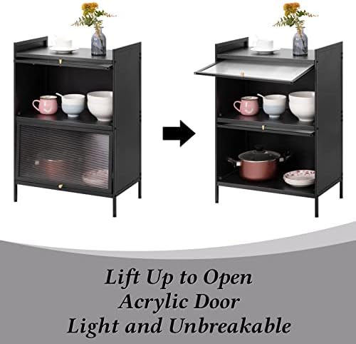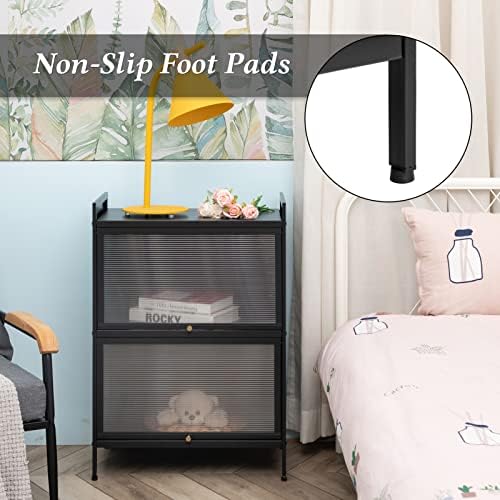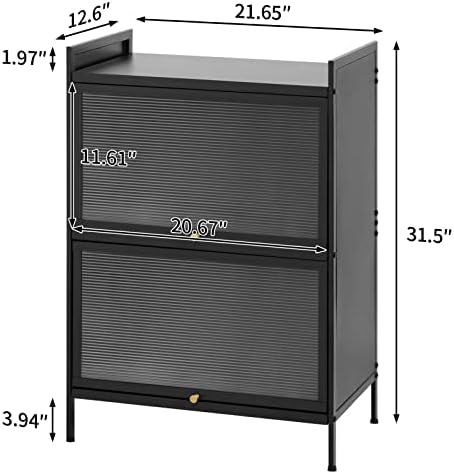 PEETEEPOE Metal 2-Tier Kitchen Pantry Sideboard, 21.65"(L) x31.50(H), Accent Buffet Hutch Cabinet, Freestanding Storage Locker Organizer, Console Dining Cupboard, Modern Nightstand for Bedroom, Black