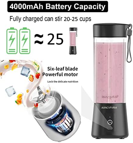 Portable Blender Juicer, 4000mAh Personal High Speed Smoothie Blender USB Rechargeable Fruit Mixing Machine for Protein Shakes and Smoothies, Baby Food