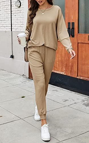 Occasions: Womens Fall Two Piece Rib-Knit Sweatsuit Is Suitable For Daily Wearing, Breathable And Warming Material Is Ideal For Spring, Autumn, And Winter. Also It Can Wear Outsides, Go Shopping With Friends, Do Chores, Sports, Party, Running