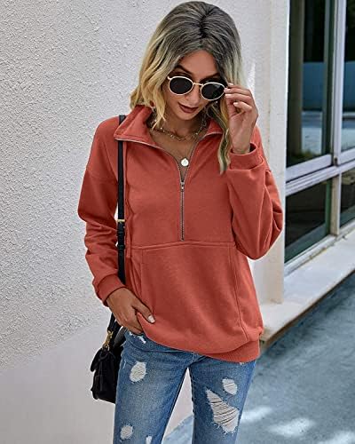 Features: Half zip pullover women, Solid color cute sweatshirts for women, Lapel half zip up sweatshirt women, Womens sweatshirt no hood, Long Sleeve pullover sweatshirts for women, Ribbed cuffs, 1 front big pocket, Oversized sweatshirt for women, Soft zipper fall sweatshirts for women loose fit, Casual womens sweatshirts no hood, Drawstring neck womens oversized sweatshirts, Quarter zip pullover women
