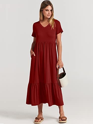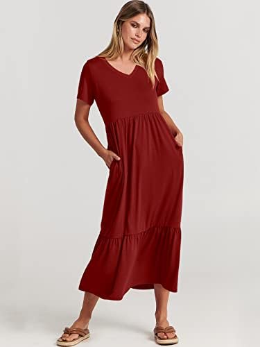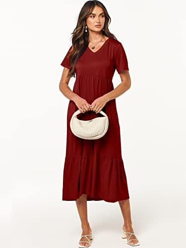 Features – Short Sleeve, solid color, V Neck, tiered flowy dress, sun dress, with Pockets. Summer maxi dress, perfect to hide your belly and hip, suitable for all body types.