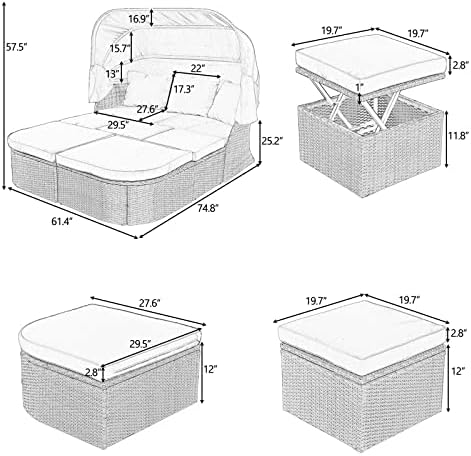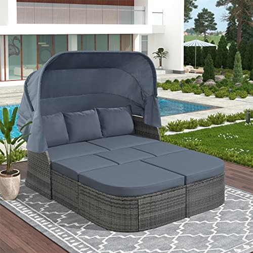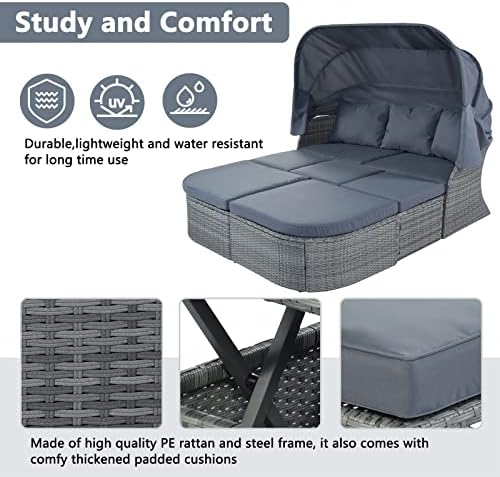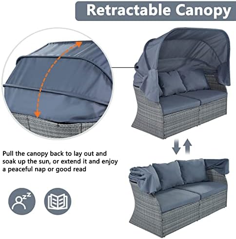 Designed with style and comfort, this rattan sunbed set is the perfect accompaniment to almost any outdoor space. Whether you want to rest by the pool or enjoy a garden party with friends, this versatile furniture will help you make full use of warm and sunny days. And this daybed includes foam-filled cushions that are luxuriously soft, water-repellent. Transform your garden or poolside into the chic space you’ve always wanted. The adjustable canopy can be used in sunshine or to enjoy the shade. In addition, you can rearrange this set. You can combine the seats to enjoy a quiet afternoon alone, or separate the seats to enjoy chatting with family and friends.