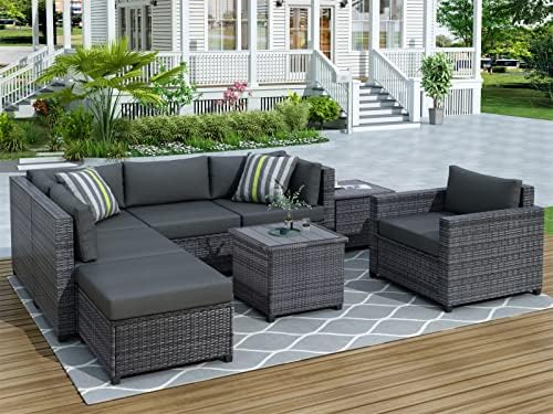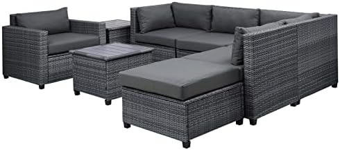 Turn your backyard into an outdoor getaway with our 8-Piece Wicker Patio Set. Designed with versatility in mind, each set comes with a 2 seater sofa, lounge sofa, coffee table and side sofa chair. Instantly create a cohesive sectional by simply pushing the 2 seater sofa and lounge sofa together, or separate them if you want your patio set to cover a larger area of space. Crafted with thick woven rattan wicker weaving reinforced with rust resistant steel, this patio set is resistant to water, cracking, splitting and sun rays so it can last you and your family for years to come. Lean back and relax for hours on end with the thick high density foam cushions upholstered in soft fabric covers that are formulated for easy spot cleaning, while the spacious design comfortably sits 5-6 people for plenty of room for your family and guests. This patio set is the perfect addition to backyards, patios, poolside, gardens and any other outdoor spot that needs a little polishing up.