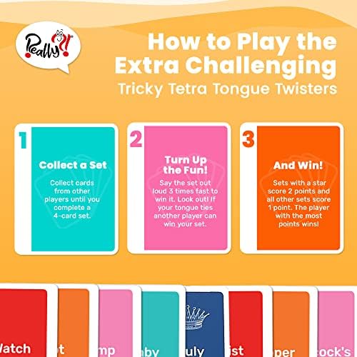 4 Unique Ways to Play – Really?! Tricky Tetra Tongue Twisters family card games for teens and adults include easy-to-follow instructions for a more challenging 4-card gameplay. Enjoy fun gameplay variations with tongue twist challenge or play it as an amusing memory game, too.