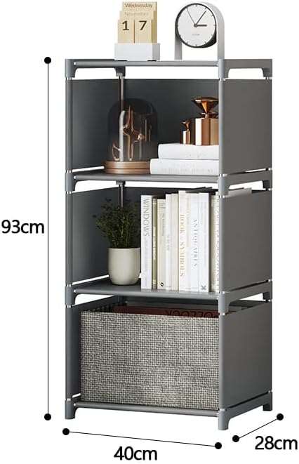 Such a small storage shelf with simple structure, easy to set up once getting the hang of it; parts are easy to classify, no hand tools are required and 10-15 minutes for assembly, then a decent and sturdy shelving unit will appear