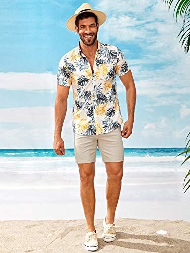 Romwe Men’s Short Sleeve Hawaiian Shirt Tropical Print Casual Pocket Front Aloha Shirt