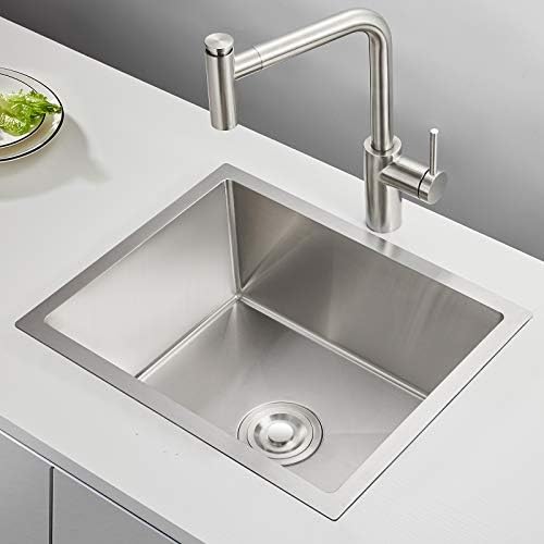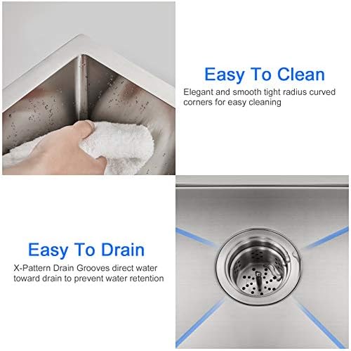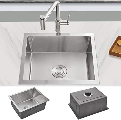 Designed with a standard drain, straight walls, and tight-radius corners, this ROVOGO high-capacity stainless steel sink will add a contemporary feel to your kitchen. Convenient dual mount configuration allows you to install it as an undermount or top mount with any type of kitchen counter. Handmade from high quality T304 stainless steel with gently sloped bottom and creased channel grooves that allow for superior drainage, comes paired with a removable basket strainer.
