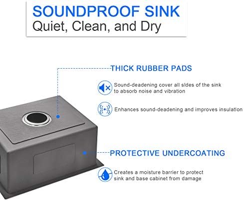 【Sound Absorbing Quiet Sink】Sound-guard pads and Noise-proof undercoating cover bottom and sides of the sink, reduce unwanted noise and vibration, provide a protective barrier against moisture