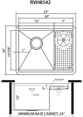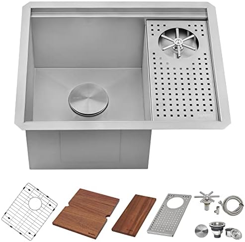 Ruvati Glass Rinser and Sink Combo 22 inch Workstation for Wet Bar Bottle Washer Undermount – RVH8542ST