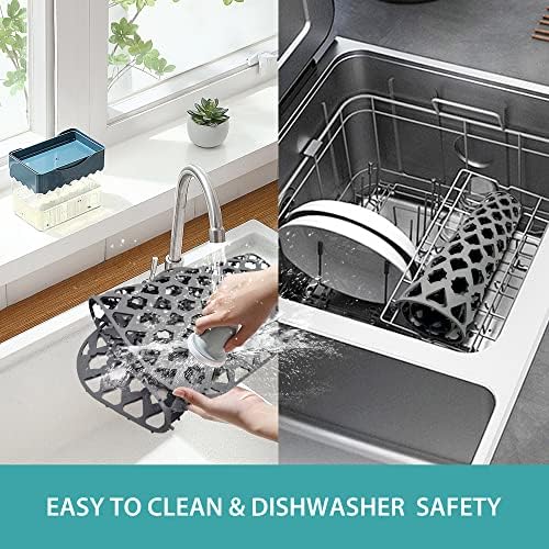 Easy to Clean & Quick Drying – Because of the flexibility of our silicone sink mats and the advantages of free bending, you can directly wash them with water or use the dishwasher. Our silicone sink mats have smooth silicone surface and simple patterns with gaps, which can make water dry quickly from them, so when as sink protectors for kitchen sink, they would not become moldy and rusty, especially as kitchen drying mats, they are also a perfect choice.