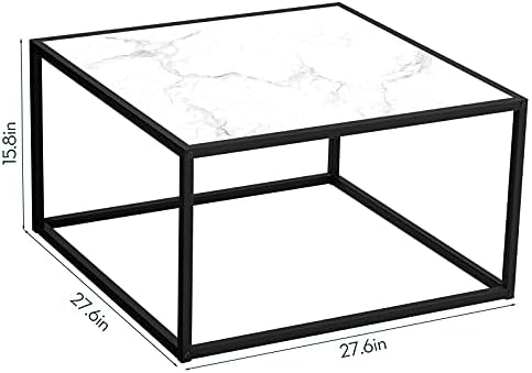 SAYGOER Marble Coffee Table Small Square Coffee Tables Simple Modern Center Table for Living Room Home Office 27.6 * 27.6 * 15.7 Inch, Easy Assembly, White Faux Marble