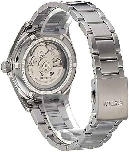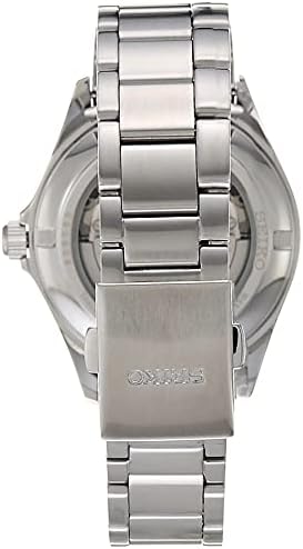 Seiko’s 4R35 mechanical movement beats at a frequency of 21,600 vibrations per hour with manual and automatic winding capabilities and a power reserve of 41 hours